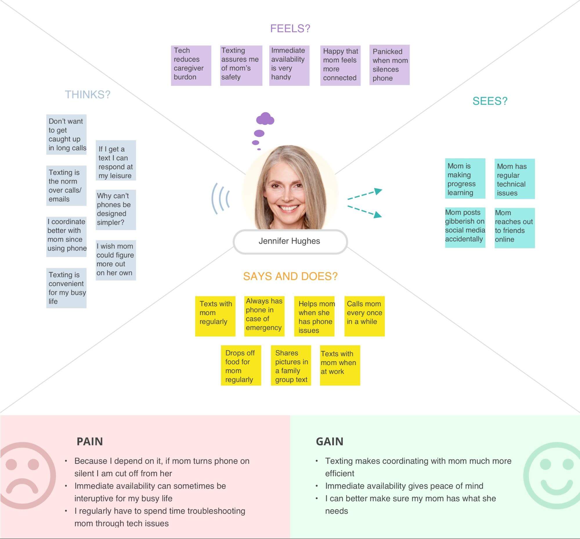 across 18 surveys and interviews. - Using design criteria extracted from research insights, designed mobile-based experiences for each user within a pair: Family OS software for care receivers and a companion application for caregivers that is platform agnostic.